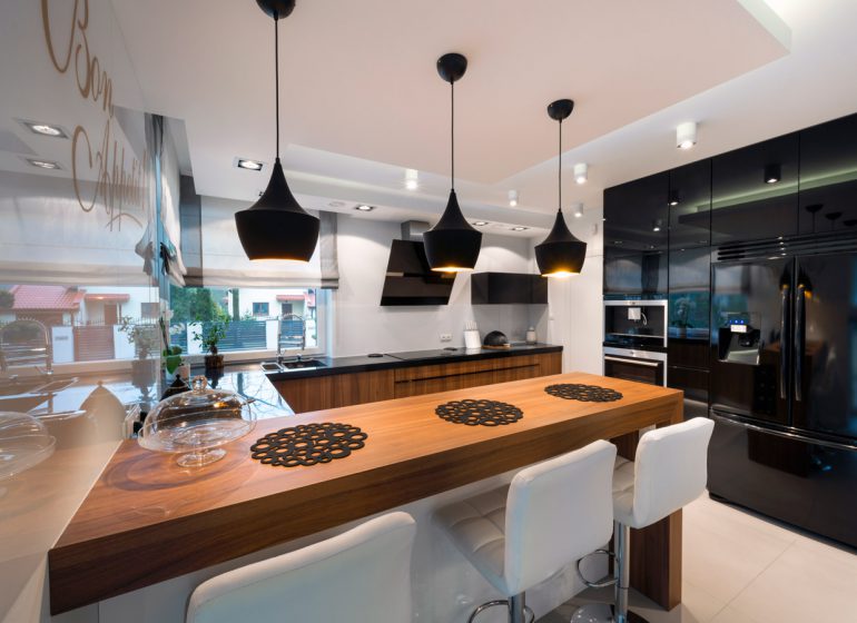 You will definitely fall in love with such a practical and superior well-equipped kitchen. It combines both as technical accomplishments and comfort, as style and beauty. There are gas cooktop, retractable downdraft hood, wine storage and many other necessary elements of the kitchen area.
